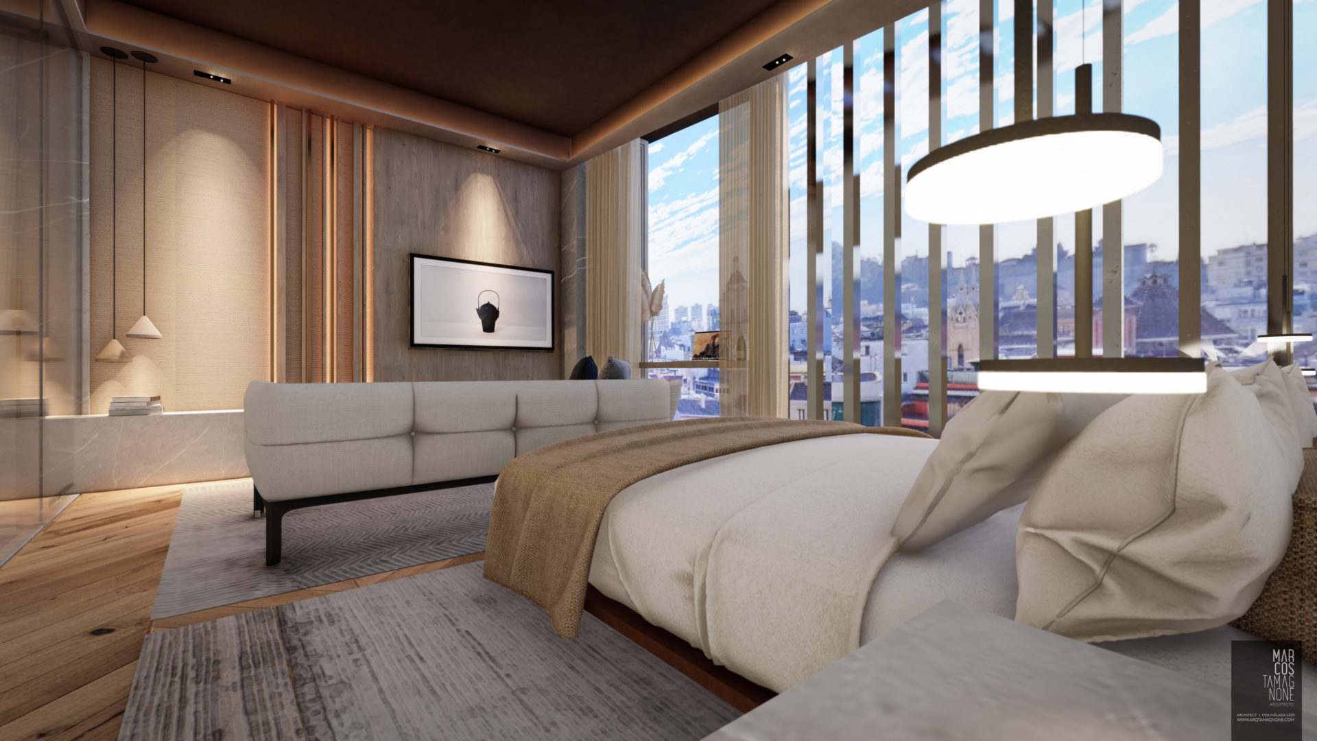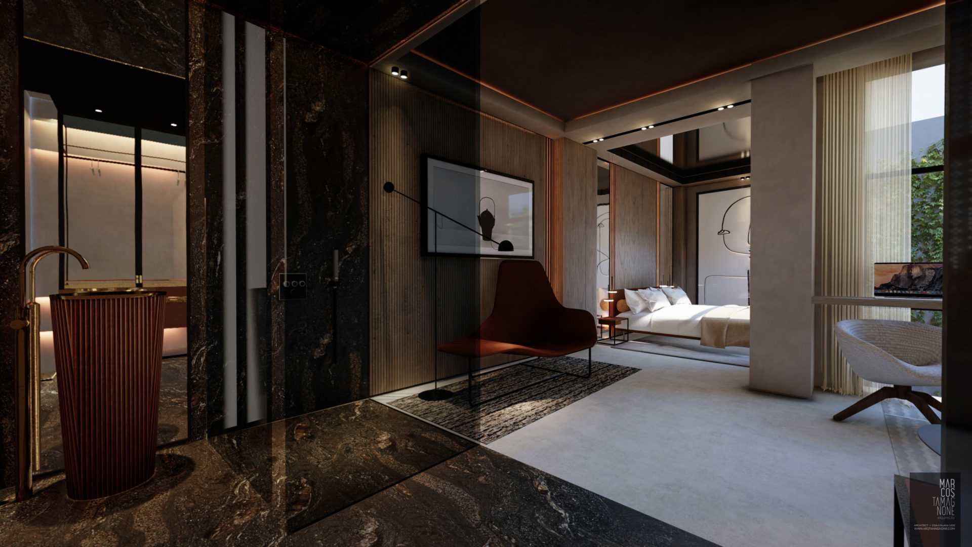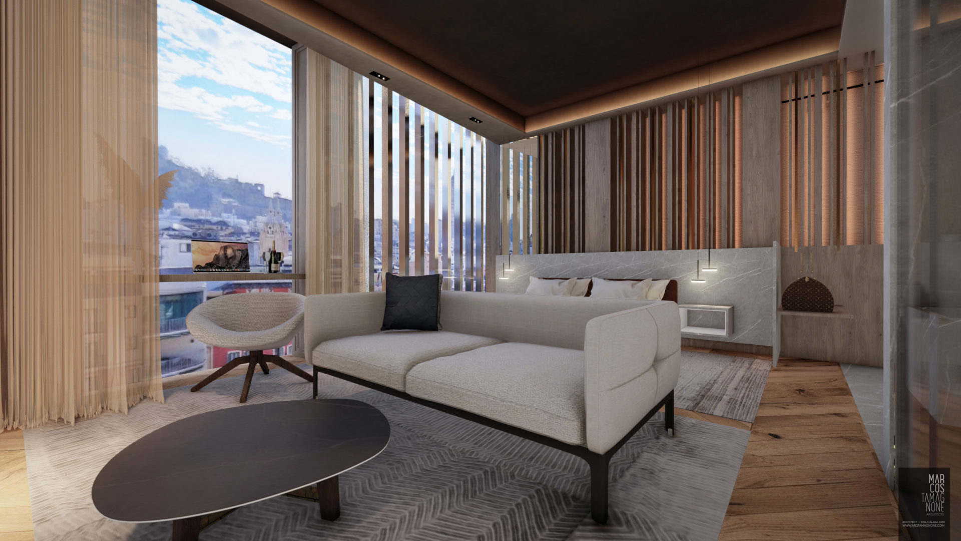 Hotel Boutique en el centro histórico de Málaga, basada en la idea conceptual de la LUZ en dónde sus 14 habitaciones, todas totalmente diferentes, cambian sus acabados y materiales según la cantidad de luz que tienen provenientes del exterior (+LUZ-). Habitaciones totalmente domotizadas, con controles de última tecnología.