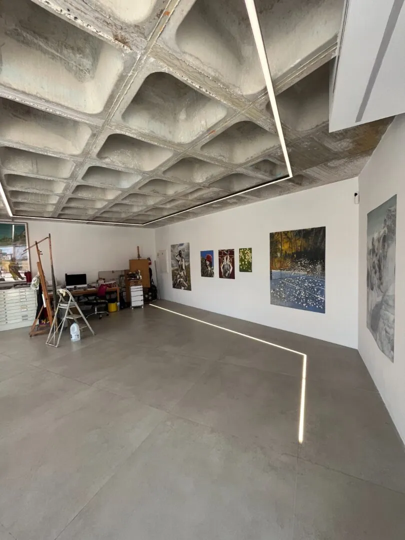 Estudio de Arte del famoso artista malagueño José Luis Puche, espacio minimalista, sobrio que solo quiere servir de «lienzo en blanco» o soporte a las maravillosas obras del artista, que rompe y sorprende en un espacio anexo, como es el baño. Entender su complejo proceso creativo y de trabajo fue primordial a la hora de diseñar los espacios multifuncionales, que no sólo tenían que incluir espacios de pintura y escultura, sino también administrativos y de exposición entre otros.